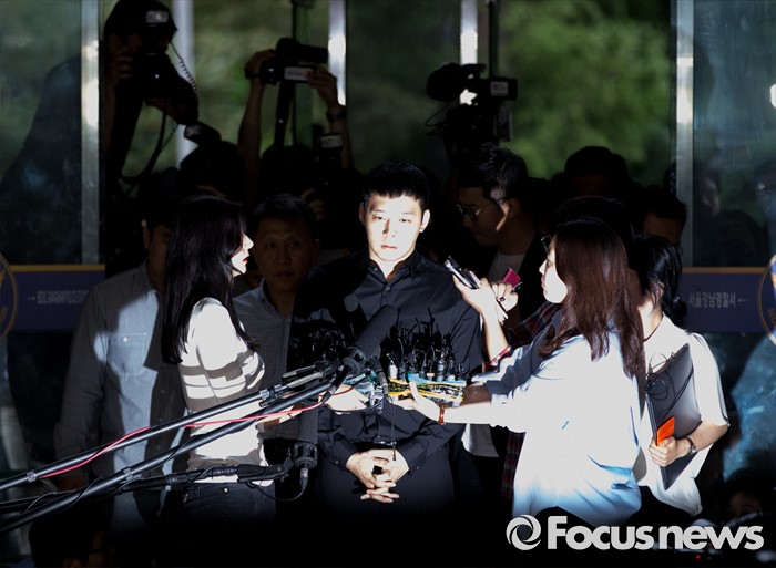 (서울=포커스뉴스) 성폭행 혐의로 4명의 여성에게 연이어 피소된 가수 겸 배우 박유천이 30일 오후 서울 강남경찰서로 출석하고 있다.