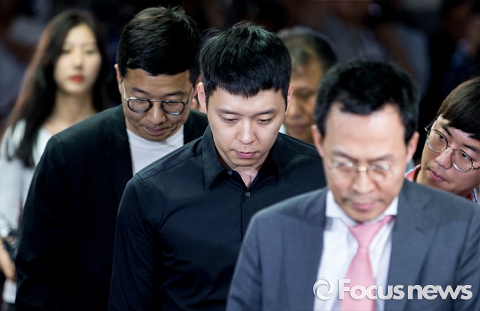 (서울=포커스뉴스) 성폭행 혐의로 4명의 여성에게 연이어 피소된 가수 겸 배우 박유천이 30일 오후 서울 강남경찰서로 출석하고 있다.
