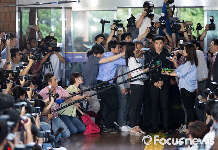 (서울=포커스뉴스) 성폭행 혐의로 4명의 여성에게 연이어 피소된 가수 겸 배우 박유천이 30일 오후 서울 강남경찰서로 출석하고 있다.