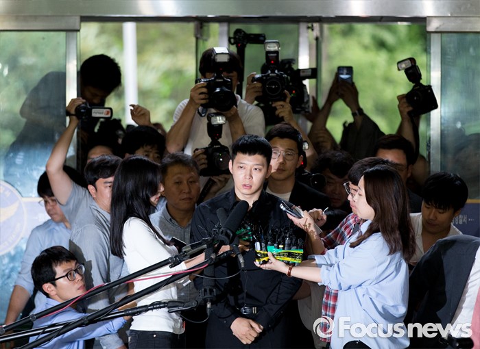 (서울=포커스뉴스) 성폭행 혐의로 4명의 여성에게 연이어 피소된 가수 겸 배우 박유천이 30일 오후 서울 강남경찰서로 출석하고 있다.