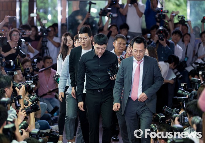 (서울=포커스뉴스) 성폭행 혐의로 4명의 여성에게 연이어 피소된 가수 겸 배우 박유천이 30일 오후 서울 강남경찰서로 출석하고 있다.