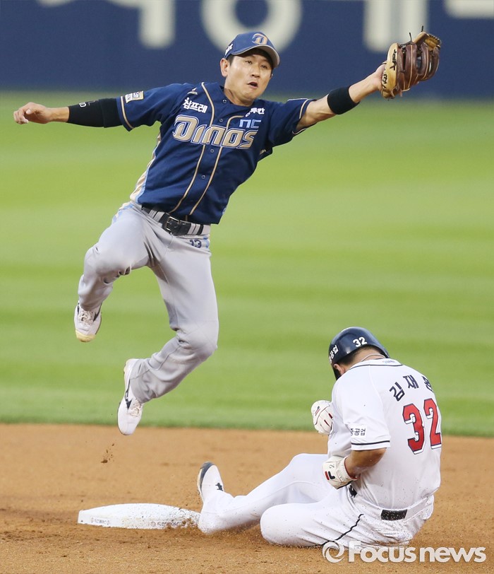 (서울=포커스뉴스) 30일 서울 잠실구장에서 열린 2016 프로야구 NC-두산 경기 2회말 2사 1루에서 두산 1루주자 김재환이 2루 도루를 시도해 포수 악송구에 세이프되고 있다.