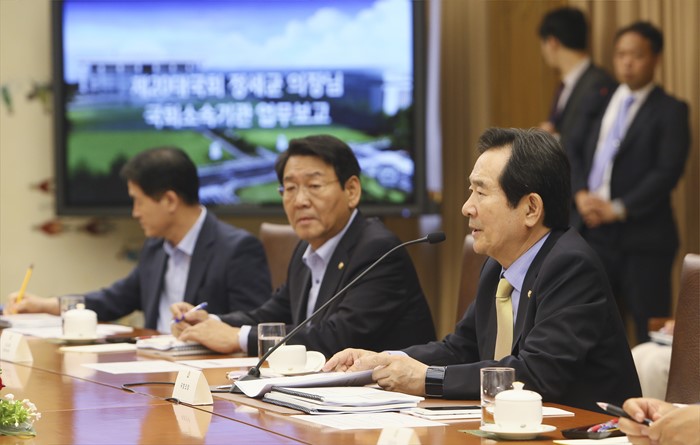 | △ 국회 업무보고 받는 정세균 의장 |
