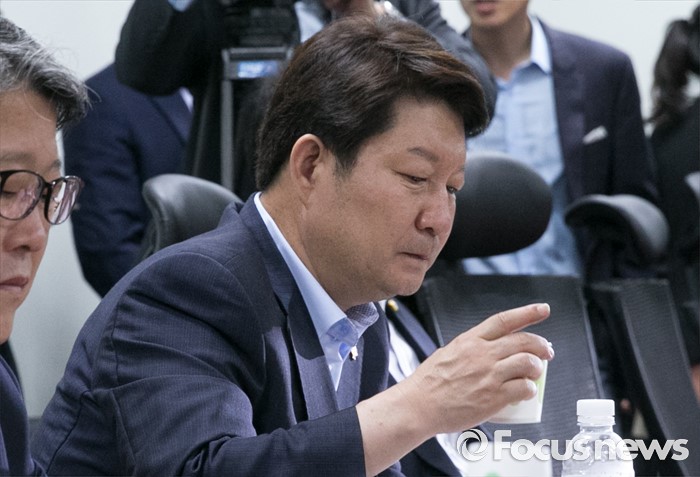 (서울=포커스뉴스) 권영진 대구시장이 1일 오전 서울 여의도 국회 의원회관에서 영남권 신공항 백지화 및 대구 공군비행장 이전과 존치문제 등 논의를 위해 열린 새누리당 대구지역 의원들과의 간담회에 참석해 물을 마시고 있다.