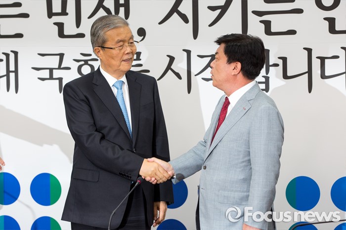 | △ 악수하는 김종인 대표-박성택 회장 |