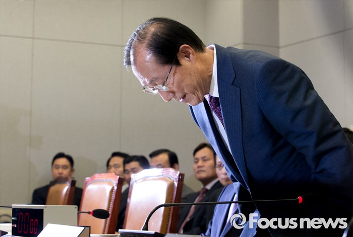 (서울=포커스뉴스) 1일 오전 서울 여의도 국회에서 열린 운영위원회 전체회의에 참석한 이원종 대통령비서실장이 인사하고 있다.