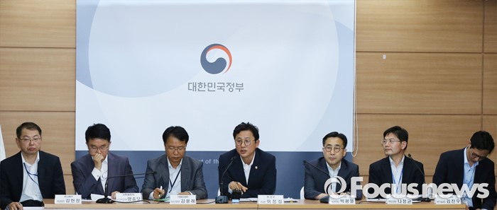 (세종=포커스뉴스) 이정섭 환경부 차관이 1일 오전 세종시 정부세종청사 6동 브리핑룸에서 미세먼지 관리 특별대책 세부이행계획을 발표하고 있다. 정부는 브리핑에서 2020년까지 친환경차 보급에 3조원, 충전인프라에 7600억원, 노후경유차 조기폐차에 1800억원을 투자하고 금년 7월중 에너지상대가격 조정 연구 착구, 석탄화력발전도 미세먼지 저감대책 발표, 노후경유차 수도권 운행제한 시행 방안 확정 등 핵심대책의 구체와 및 일정단축 등을 주요내용으로 발표했다. 왼쪽부터 김헌정 국토교통부 대중교통과장, 민상기 기획재정부 신성장정책과장, 김용래 산업통상자원부 에너지산업국장, 이정섭 차관, 박광열 해양수산부 해사안전국장, 나정균 환경부 기후대기정책관, 김진우 미래창조과학부 원천기술과장.