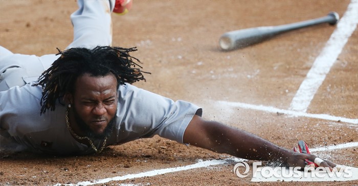 | △ 홈 슬라이딩하는 SK 고메즈 |