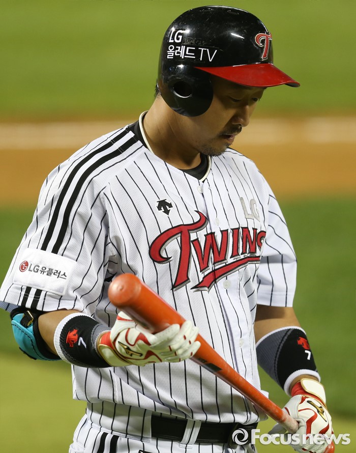 (서울=포커스뉴스) 3일 서울 잠실구장에서 열린 2016 프로야구 SK-LG 경기 8회말 2사 1,2루에서 LG 이병규가 삼진 아웃 당하고 실망한 표정으로 덕아웃으로 들어가고 있다.