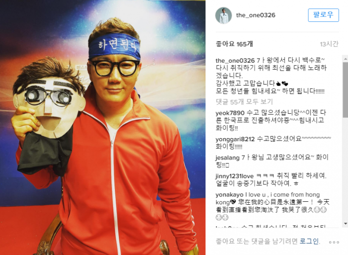 더원은 3일 자신의 SNS를 통해 "가왕에서 다시 백수로. 다시 취직하기 위해 최선을 다해 노래하겠습니다"라는 소감과 함께 가면을 벗은 인증 사진을 공개했다. 아울러 "그동안 감사했고 고마웠습니다. 모든 청년들 힘내세요. 하면 됩니다"라는 응원의 말도 함께 전했다.