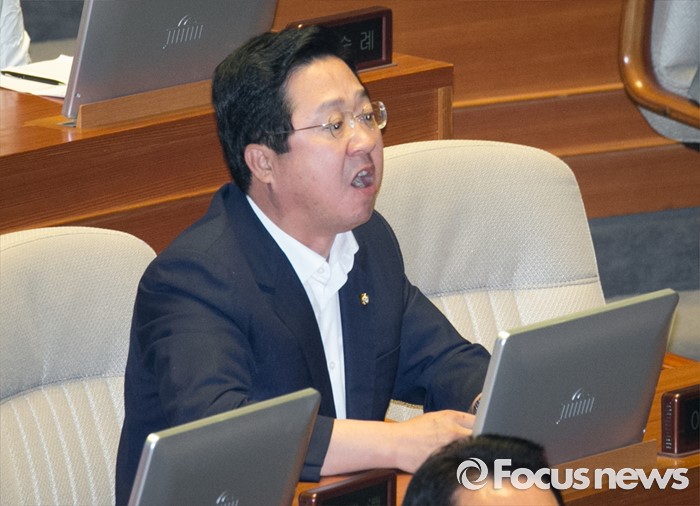(서울=포커스뉴스) 5일 오전 서울 여의도 국회에서 열린 343회 국회(임시회) 7차 본회의, 정치·외교·통일·안보·교육·사회·문화에 관한 질문에 참석한 이장우 새누리당 의원이 김동철 국민의당 의원에게 사과를 요구하며 언성을 높이고 있다.