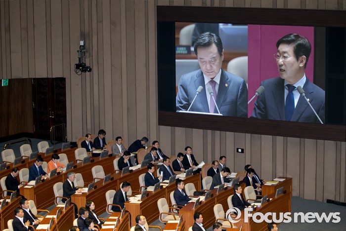 (서울=포커스뉴스) 5일 오전 서울 여의도 국회에서 열린 343회 국회(임시회) 7차 본회의, 정치·외교·통일·안보·교육·사회·문화에 관한 질문에 참석한 김현웅 법무부 장관이 박범계 더불어민주당 의원의 질문에 답하고 있다.