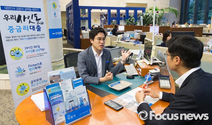(서울=포커스뉴스) 5일 오후 서울 중구 우리은행 본점에서 은행 고객이 사잇돌 중금리 대출 상담을 받고 있다.