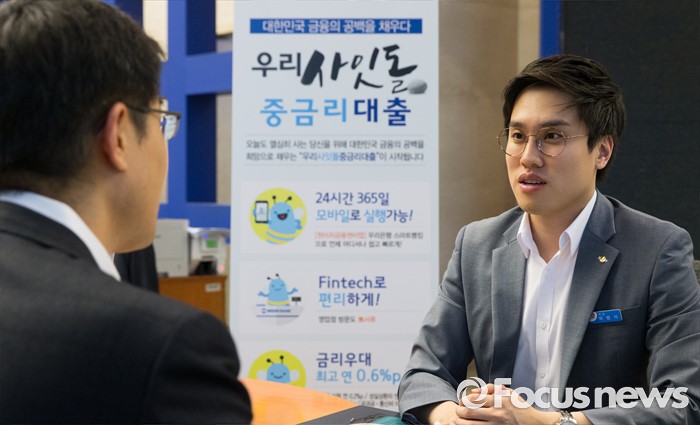 (서울=포커스뉴스) 5일 오후 서울 중구 우리은행 본점에서 은행 고객이 사잇돌 중금리 대출 상담을 받고 있다.