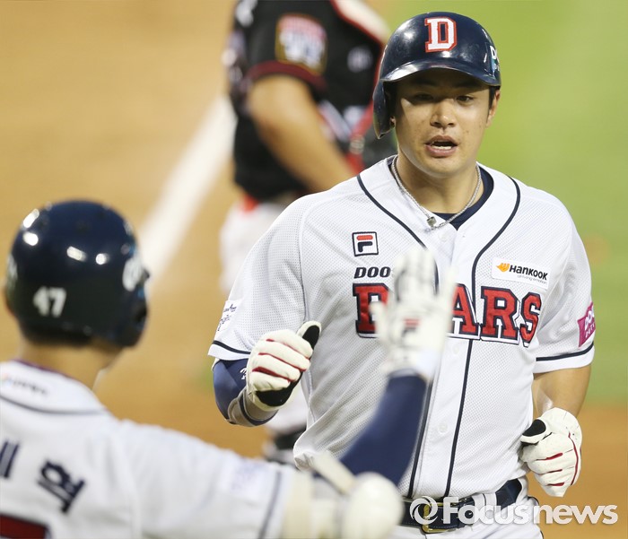| △ 득점하는 두산 김재환 |