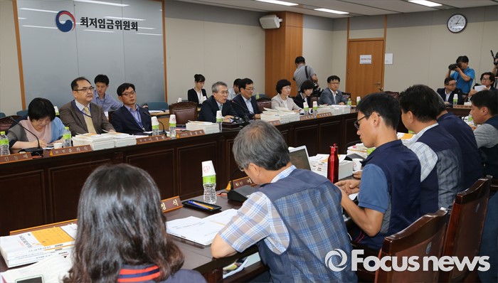 (세종=포커스뉴스) 5일 오후 세종시 정부세종청사 고용노동부 최저임금위원회에서 열린 제9차 전원회에서 박준성 위원장이 회의를 주재하고 있다.