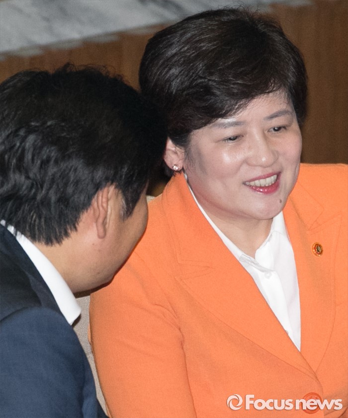 (서울=포커스뉴스) 5일 오후 서울 여의도 국회에서 열린 343회 국회(임시회) 7차 본회의, 정치·외교·통일·안보·교육·사회·문화에 관한 질문에 참석한 원유철(왼쪽) 새누리당 의원과 강은희 여성가족부 장관이 대화하고 있다.