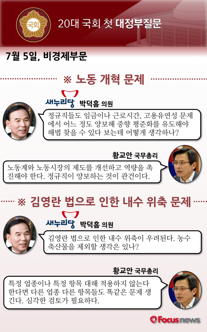 다음은 새누리당 박덕흠 의원과 황교안 국무총리의 질의응답 내용이다.