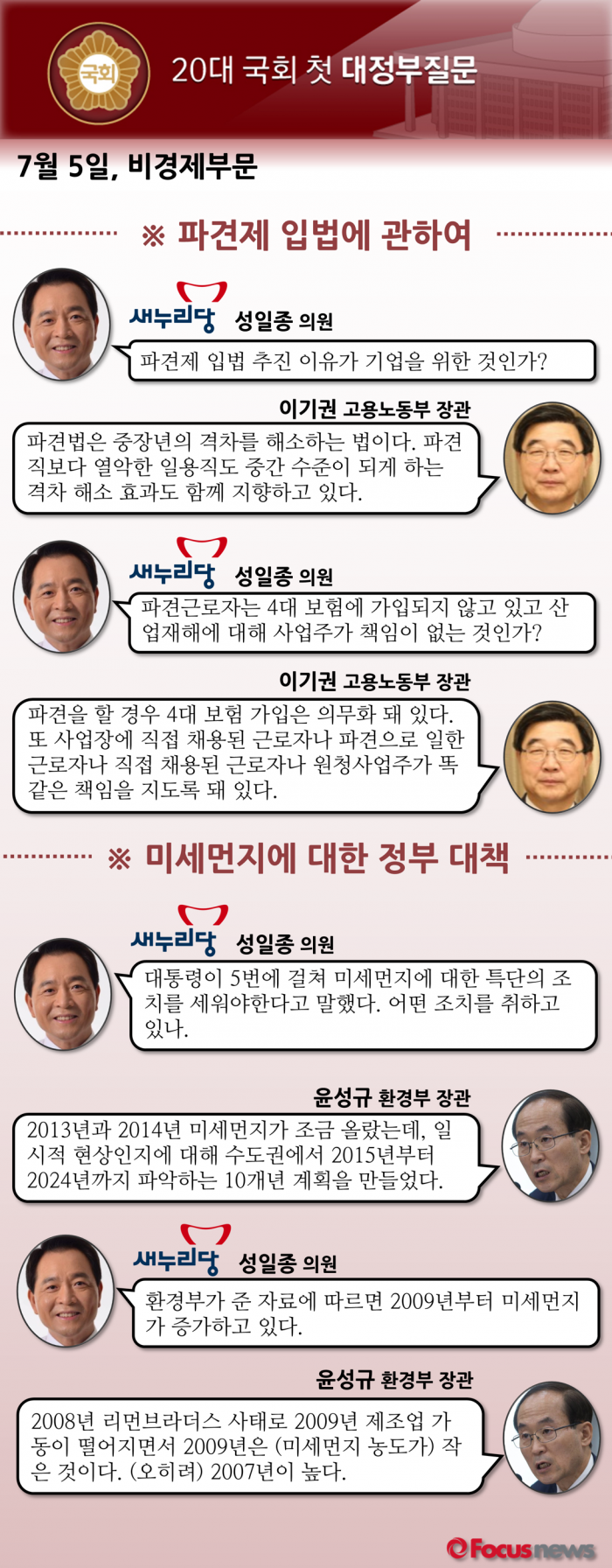 다음은 새누리당 성일종 의원과 이기권 고용노동부 장관·윤성규 환경부 장관의 질의응답 내용이다.