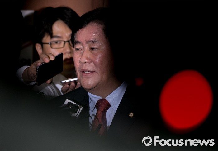 (서울=포커스뉴스) 최경환 새누리당 의원이 6일 오전 서울 여의도 국회 정론관에서 8·9 전당대회 불출마 기자회견을 마친 뒤 취재진 질문에 답하고 있다.