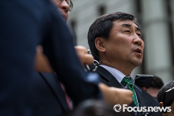 (서울=포커스뉴스) 2012년 대선을 앞두고 발생한 '국정원 여직원 감금 사건' 재판 선고가 내려진 6일 오전 서울 서초구 서울중앙지법 앞에서 이종걸 더불어민주당 의원이 재판 선고 후 법원 앞에서 취재진과 인터뷰를 하고 있다.