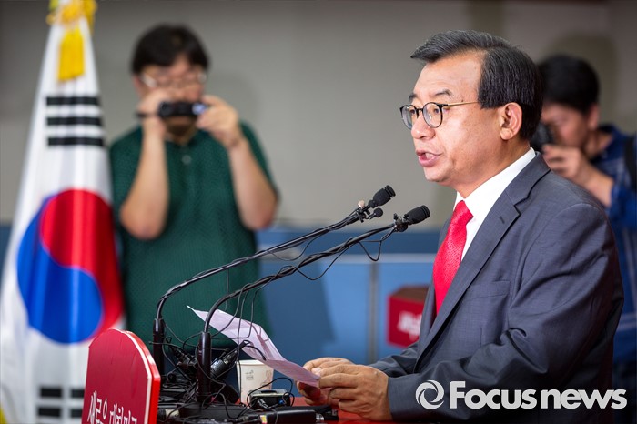 (서울=포커스뉴스) 이정현 새누리당 의원이 7일 오전 서울 여의도 새누리당사에서 오는 8월 당 대표를 선출하는 전당대회에 후보로 출마하겠다는 입장을 밝히고 있다.