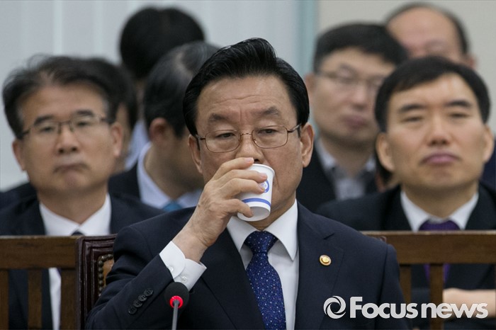 (서울=포커스뉴스) 7일 오전 서울 여의도 국회에서 열린 안전행정위원회 전체회의에 참석한 박인용 국민안전처 장관이 물을 마시고 있다.
