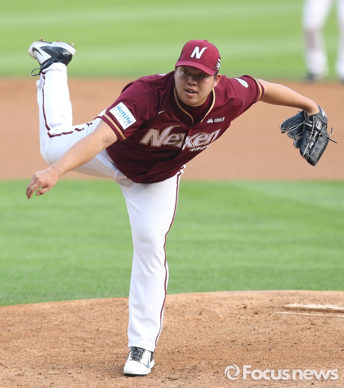 (서울=포커스뉴스) 6일 서울 잠실구장에서 열린 2016 프로야구 넥센-두산 경기에서 1회말 넥센 선발투수 박주현이 투구하고 있다.