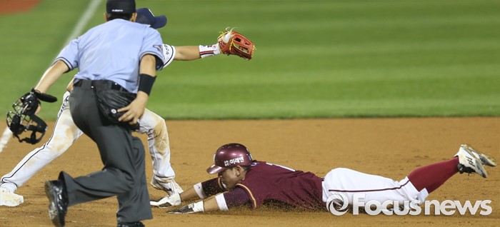 | △ 3루에서 세이프되는 넥센 서건창 |