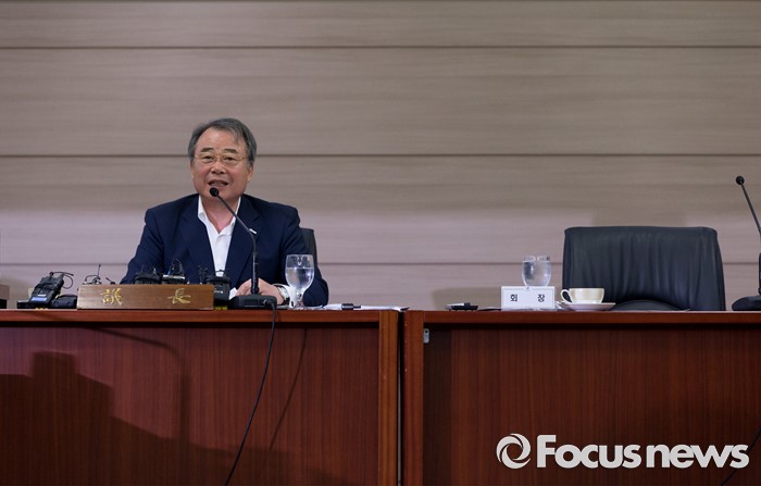 (서울=포커스뉴스) 8일 오전 서울 송파구 올림픽파크텔에서 열린 대한체육회 제4차 긴급 임시 이사회에서 강영중 대한체육회 회장이 인사말을 하고 있다. 이번 임시 이사회에서는 박태환의 리우 올림픽 출전 여부가 긴급 안건으로 상정됐다.