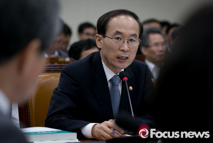 (서울=포커스뉴스) 8일 오전 서울 여의도 국회에서 열린 환경노동위원회 전체회의에 참석한 윤성규 환경부 장관이 의원들의 질의에 답하고 있다.