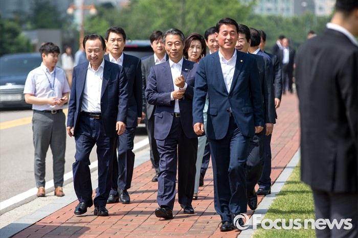 (서울=포커스뉴스) 박근혜 대통령과 새누리당 의원들의 오찬이 예정되있는 8일 오전 서울 여의도 국회에서 새누리당 의원들이 청와대로 이동하는 버스로 향하고 있다.