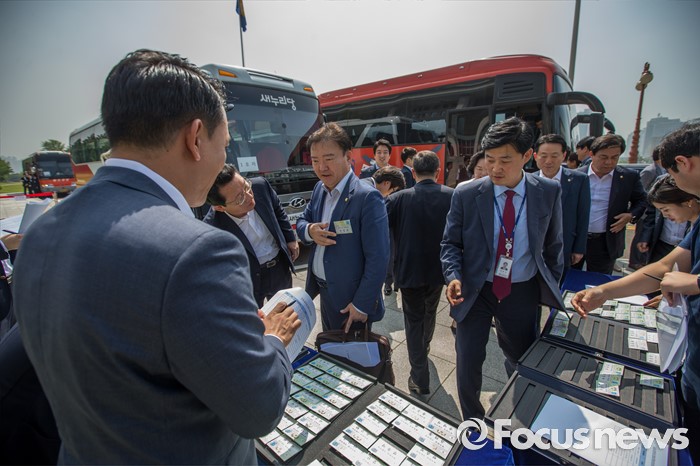 (서울=포커스뉴스) 박근혜 대통령과 새누리당 의원들의 오찬이 예정되있는 8일 오전 서울 여의도 국회에서 새누리당 의원들이 청와대로 이동하는 버스 탑승에 앞서 이름표를 착용 하고 있다.