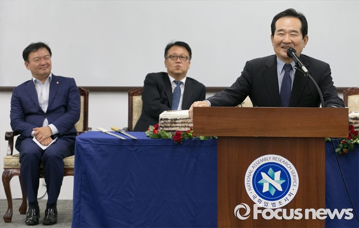 (서울=포커스뉴스) 정세균 국회의장이 8일 오후 서울 여의도 국회도서관에서 열린 국회입법조사처 입법조사요구 4만건 돌파 기념식에 참석해 축사를 하고 있다.