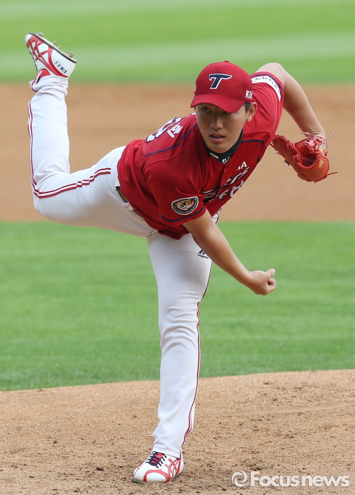 (서울=포커스뉴스) 10일 서울 잠실구장에서 열린 2016 프로야구 KIA-두산 경기에서 1회말 KIA 선발투수 홍건희가 투구하고 있다.