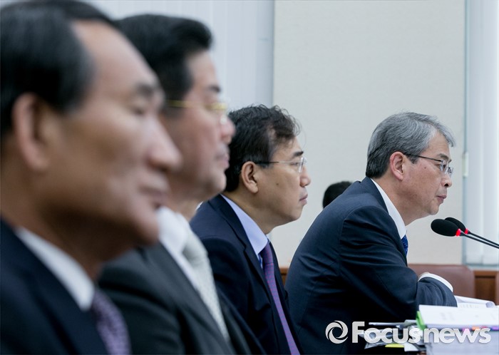 (서울=포커스뉴스) 11일 오전 서울 여의도 국회에서 열린 정무위원회 전체회의에 참석한 임종룡 금융위원장이 의원들의 질의에 답하고 있다.
