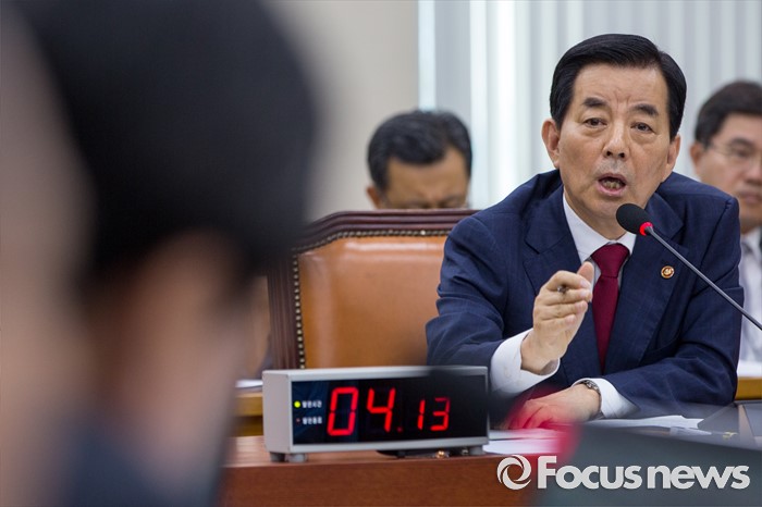 (서울=포커스뉴스) 한민구 국방부 장관이 11일 오후 서울 여의도 국회에서 열린 국방위원회 전체회의에 참석해 사드배치 관련된 국방위원 질의에 답하고 있다.