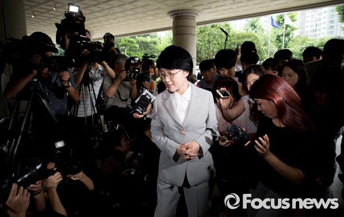 (서울=포커스뉴스) 총선 홍보비 리베이트 의혹에 휩싸인 박선숙 국민의당 의원이 구속 전 피의자 심문(영장실질심사)를 받기 위해 11일 오후 서울서부지방법원으로 들어서고 있다.