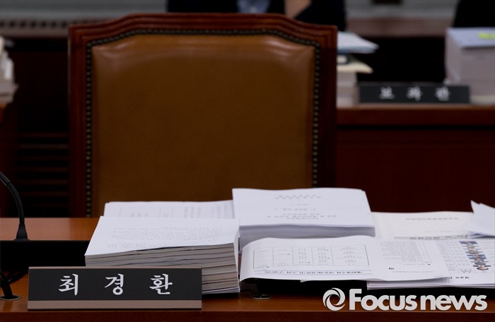 (서울=포커스뉴스) 11일 오후 서울 여의도 국회에서 열린 외교통일위원회 전체회의에 최경환 새누리당 의원의 빈 자리가 보이고 있다. 이날 최 의원은 신동빈 롯데그룹 회장으로부터 50억원을 받았다는 한 언론보도에 대해 전혀 사실과 다르다고 강력하게 반발했다.