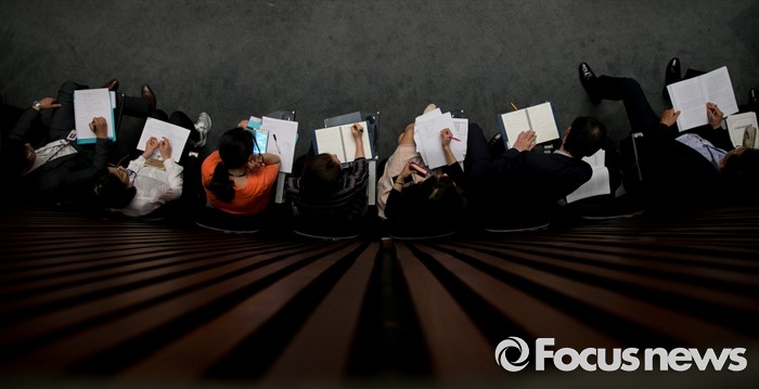 (서울=포커스뉴스) 11일 오후 서울 여의도 국회에서 예산결산특별위원회 주최로 열린 2015회계연도 결산에 대한 공청회에 보좌진들이 자리하고 있다.