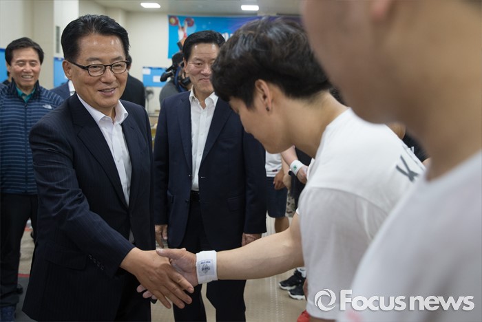 | △ 선수들 격려하는 박지원 |