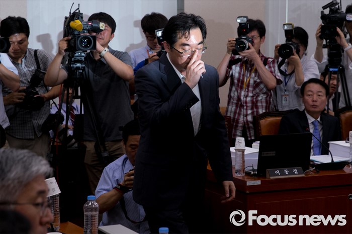 (서울=포커스뉴스) 11일 오후 서울 여의도 국회에서 열린 교육문화체육관광위원회 전체회의에 "민중은 개·돼지"라고 발언해 물의를 빚은 나향욱 교육부 정책기획관이 참석해 의원들의 질의에 답하기 위해 단상으로 향하고 있다.