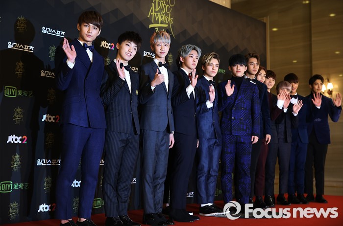 앞서 세븐틴은 지난 9일 집계된 국내 음반 판매 조사 사이트인 한터차트와 산나라레코드 등에서도 일간 음반 판매 순위 1위를 기록한 바 있다. 지난 4일 공개된 '아주 나이스(NICE)'의 뮤직비디오는 공개된 지 일주일 만에 유튜브 조회수 500만건을 돌파하며 큰 호응을 얻었다.(서울=포커스뉴스) 21일 서울 동대문구 경희대학교 평화의 전당에서 열린 제 30회 골든디스크 시상식에 참석한 아이돌 그룹 세븐틴이 포토타임을 갖고 있다. 2016.01.21 김유근 기자