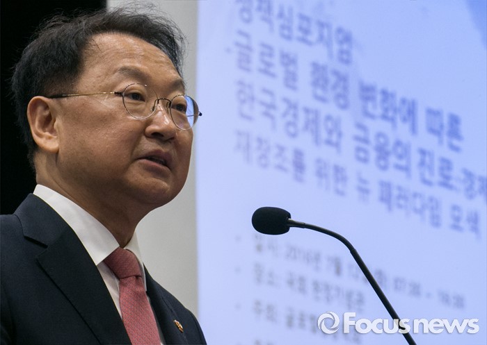 (서울=포커스뉴스) 12일 오전 서울 여의도 국회 헌정기념관에서 열린 글로벌금융학회 정책심포지엄에 참석한 유일호 경제부총리 겸 기획재정부 장관이 기조연설을 하고 있다.