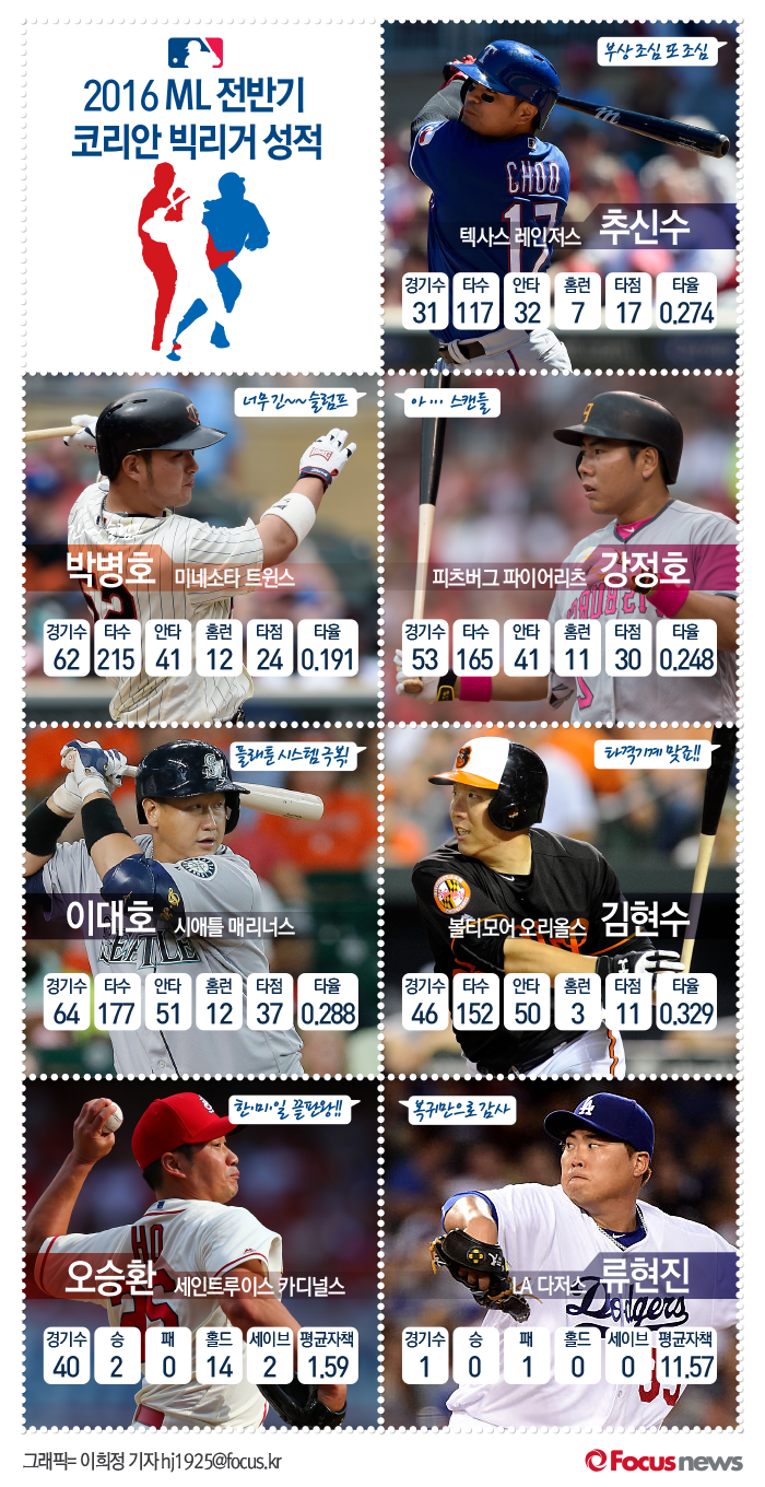 | △ [그래픽] 2016 ML 전반기 코리안 빅리거 성적 |