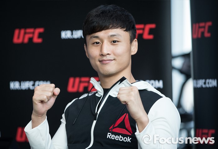 최두호는 12일 서울 여의도 리복 센티널 IFC에서 열린 기자회견에서 주짓수 강자 티아고 타바레스를 쓰러뜨린 원투 스트레이트의 비결을 공개했다.