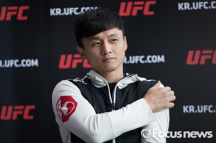(서울=포커스뉴스) 지난 9일 티아고 타바레스(31, 브라질)를 1라운드 2분 42초에 TKO로 제압하고, UFC 3연속 KO 승리라는 쾌거를 이루고 귀국한 ‘코리안 슈퍼보이’ 최두호가 선수가 12일 오전 서울 여의도 리복 센티널 IFC에서 기자회견을 하고 있다.