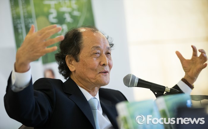 (서울=포커스뉴스) 조정래 소설가가 12일 오전 서울 중구 한국프레스센터에서 '풀꽃도 꽃이다' 출간기념 기자간담회를 하고 있다.