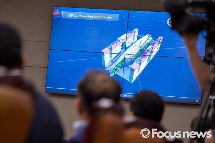 (서울=포커스뉴스) 12일 오전 서울 여의도 국회에서 열린 '농림축산해양수산위원회 전체회의'에서 세월호 인양 계획이 담긴 영상이 공개되고 있다.