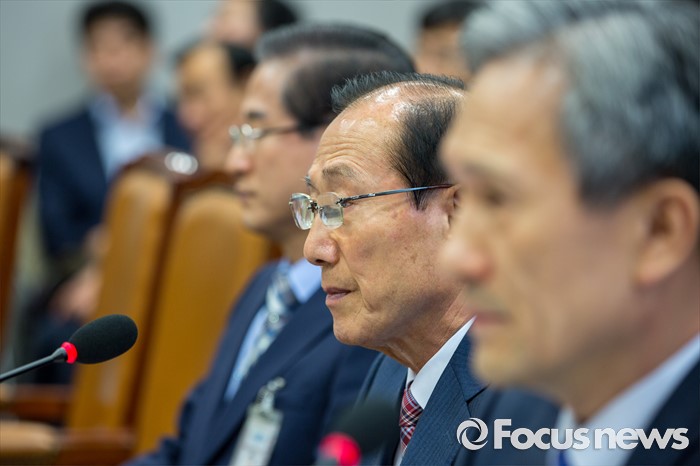 (서울=포커스뉴스) 이원종(가운데) 대통령비서실 비서실장이 13일 오전 서울 여의도 국회에서 열린 '운영위원회 전체회의'에 참석해 의원들에게 사드배치에 관련된 질문을 받고 있다.